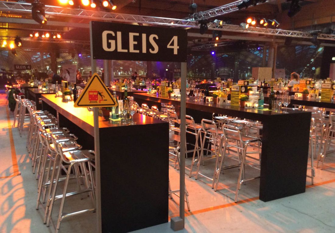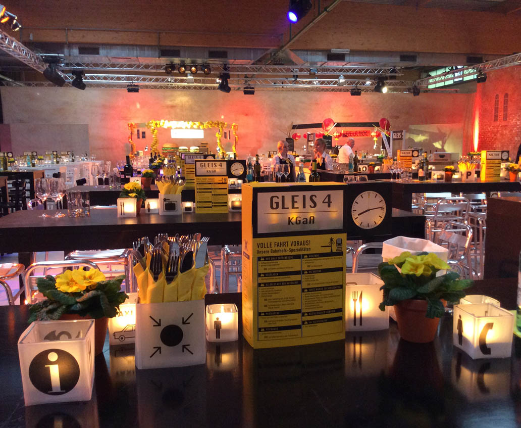 Konzept und Umsetzung einer Tischdekoration für 1800 Personen in Bahnhofs-Optik