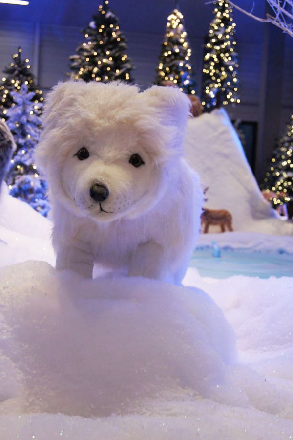 Dekoration und Ausstattung des gesamten Winterwaldes mit lebensgroßen, motorisierten Plüschfiguren