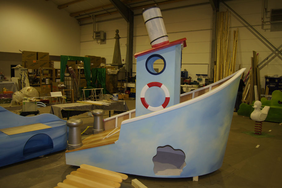 Bau, Umsetzung und Montage individueller Spielmöbel wie Spieldampfer mit Steuerrad, Kajüte und Öffnung für Schatzsuche, Aufgangsbrücke, Edelstahlrutsche, Federwipptiere, Balancierbalken, Sitzmöbel u.v.m.