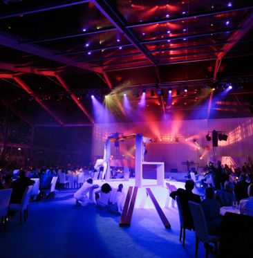 Gestaltung des Abendprogramms mit Inszenierung des Münchner Bank-Logos „Ihre Bank“