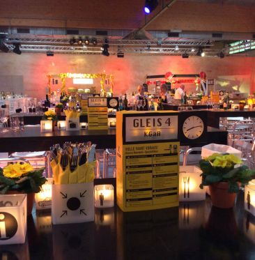Konzept und Umsetzung einer Tischdekoration für 1800 Personen in Bahnhofs-Optik